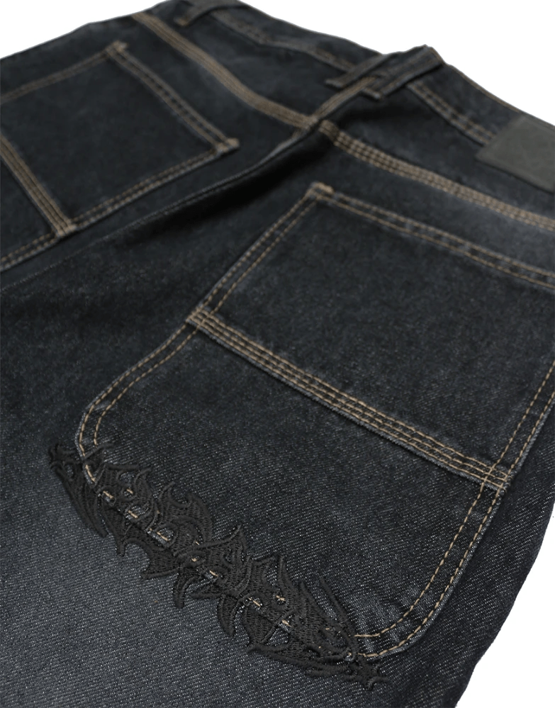 Pantalón Hombre. Marca Insane. Corte baggy. Mezclilla rígida. 5 bolsillos. Detalles de la marca en piel sintética y bordado en la bolsa trasera.