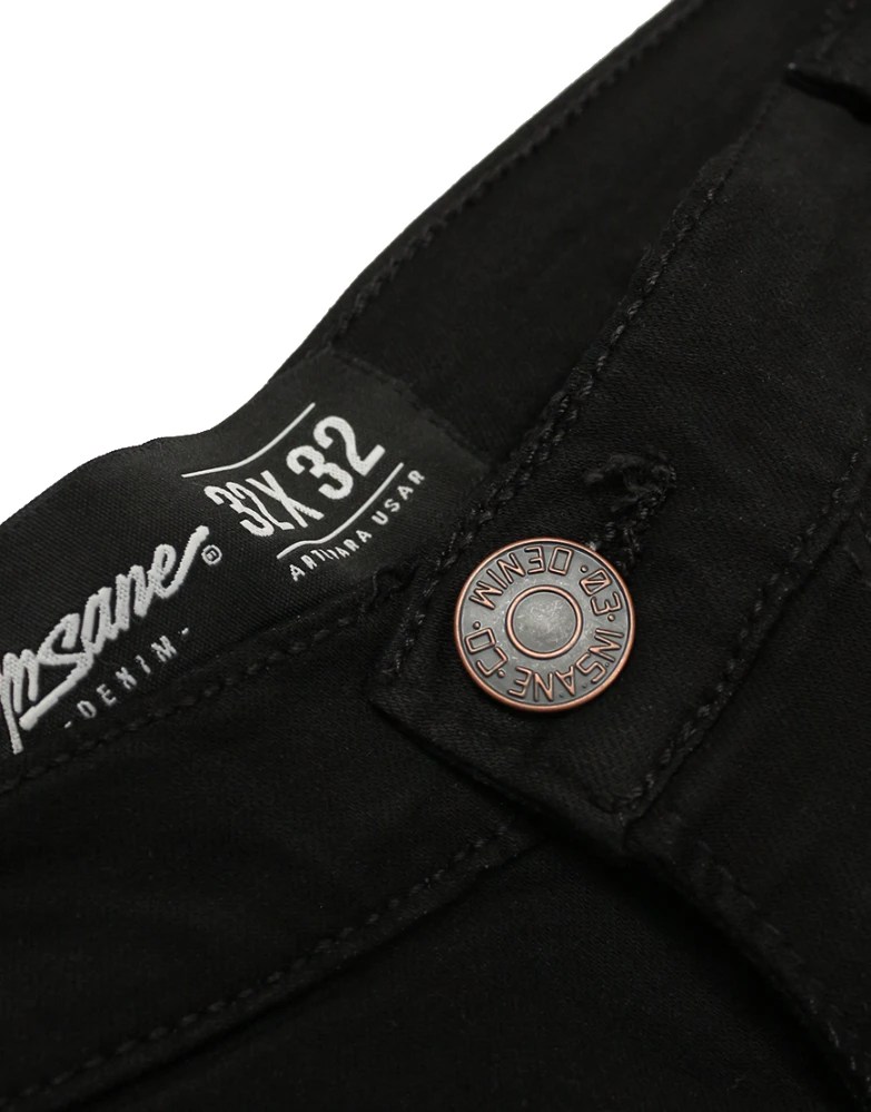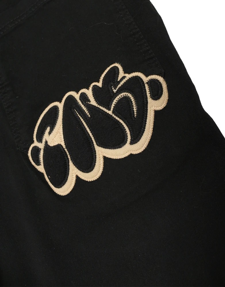 Pantalón Hombre. Marca Insane. Corte baggy. Mezclilla stresh. 5 bolsillos. Detalles de la marca en microbordado, piel sintética y bordado 3D en la bolsa trasera.